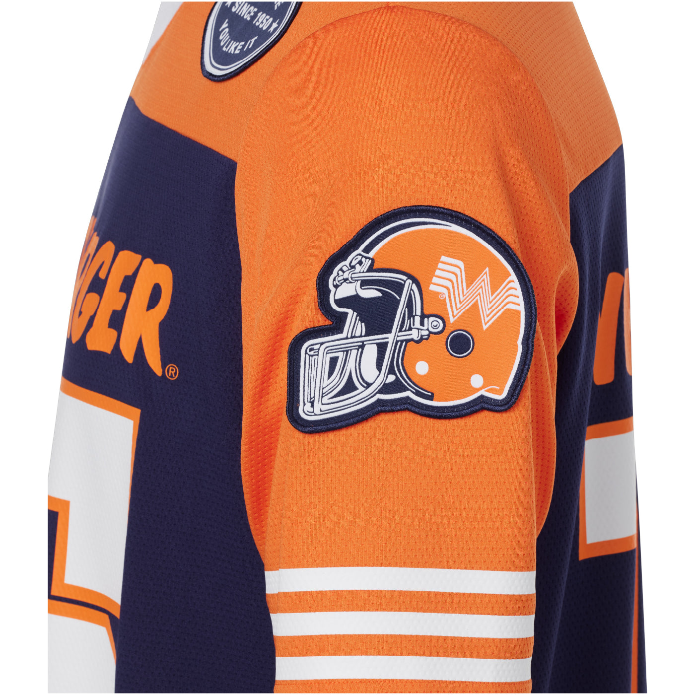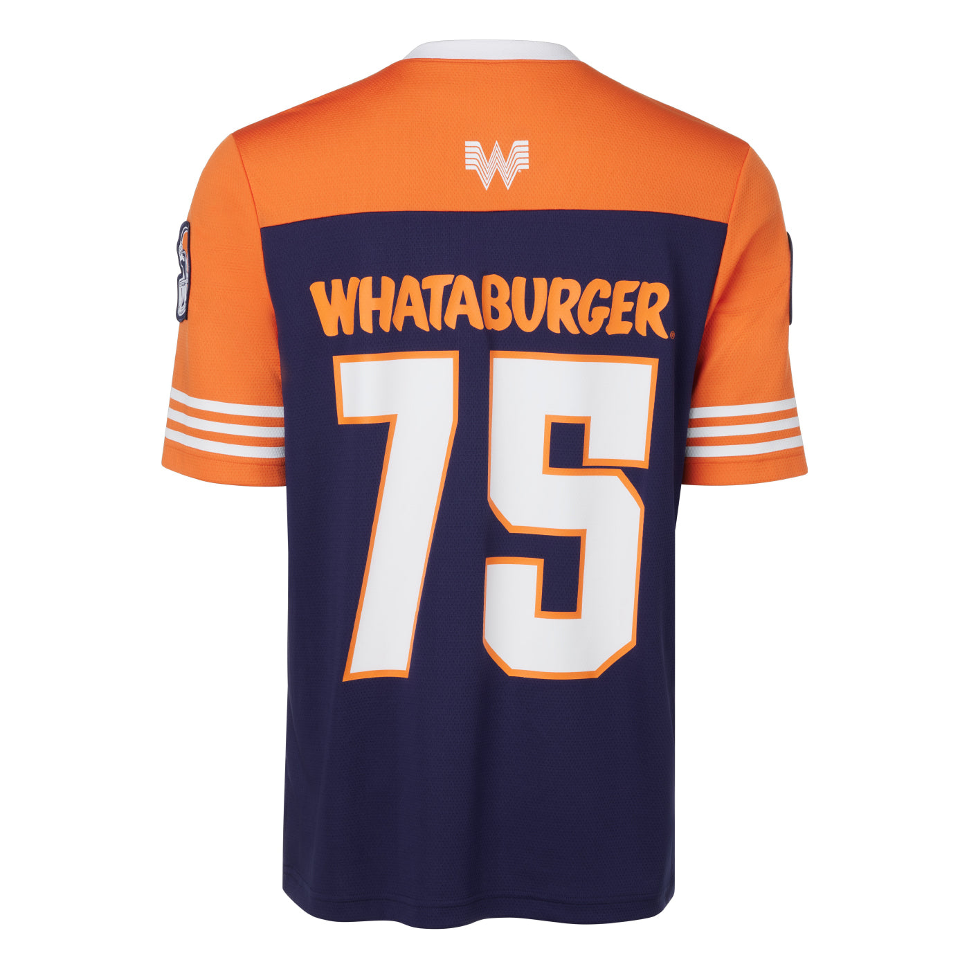 Look your best when you wear the Academy Sports + Outdoors x Whataburger Short Sleeve Football Jersey. It is made of 100% polyester. The moisture wicking technology wicks away sweat to keep you dry, and its UPF protectant blocks the sun’s harsh rays. The Flex technology allows for a wider range of movement.