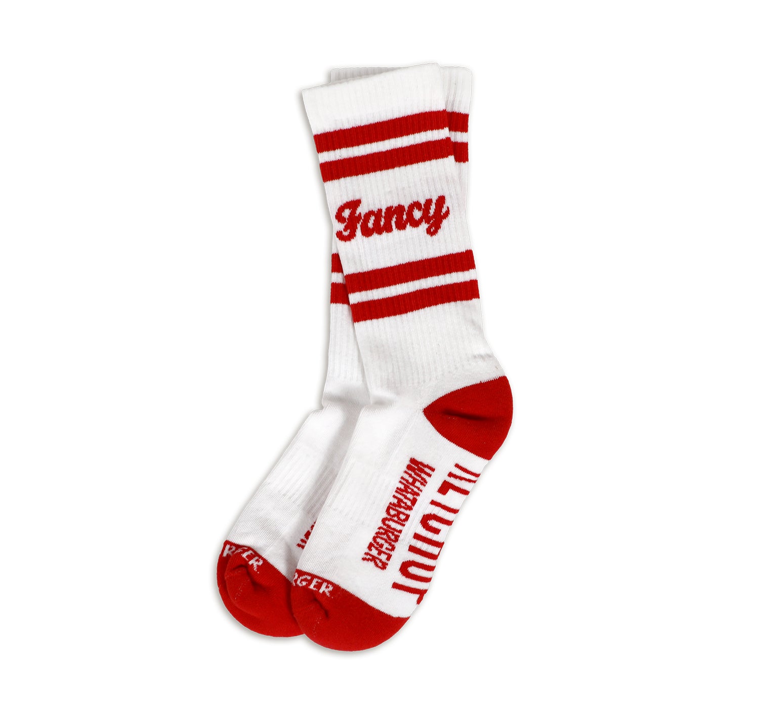 Step up your sock game with our Fancy Ketchup Athletic Socks! These white socks feature bold red stripes and accents, inspired by the iconic Whataburger Fancy Ketchup. Complete with red toes and the Whataburger logo, these socks will add a touch of playfulness to any outfit.
