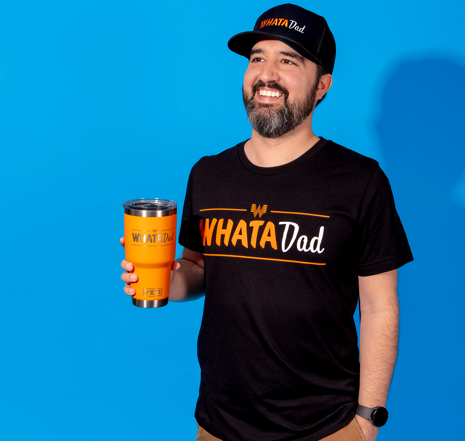 Whatasize how much DAD means to you with our WhataDad Tee. This super soft and comfortable, black, cotton/poly blended shirt is the perfect gift for any Whataburger loving DAD.