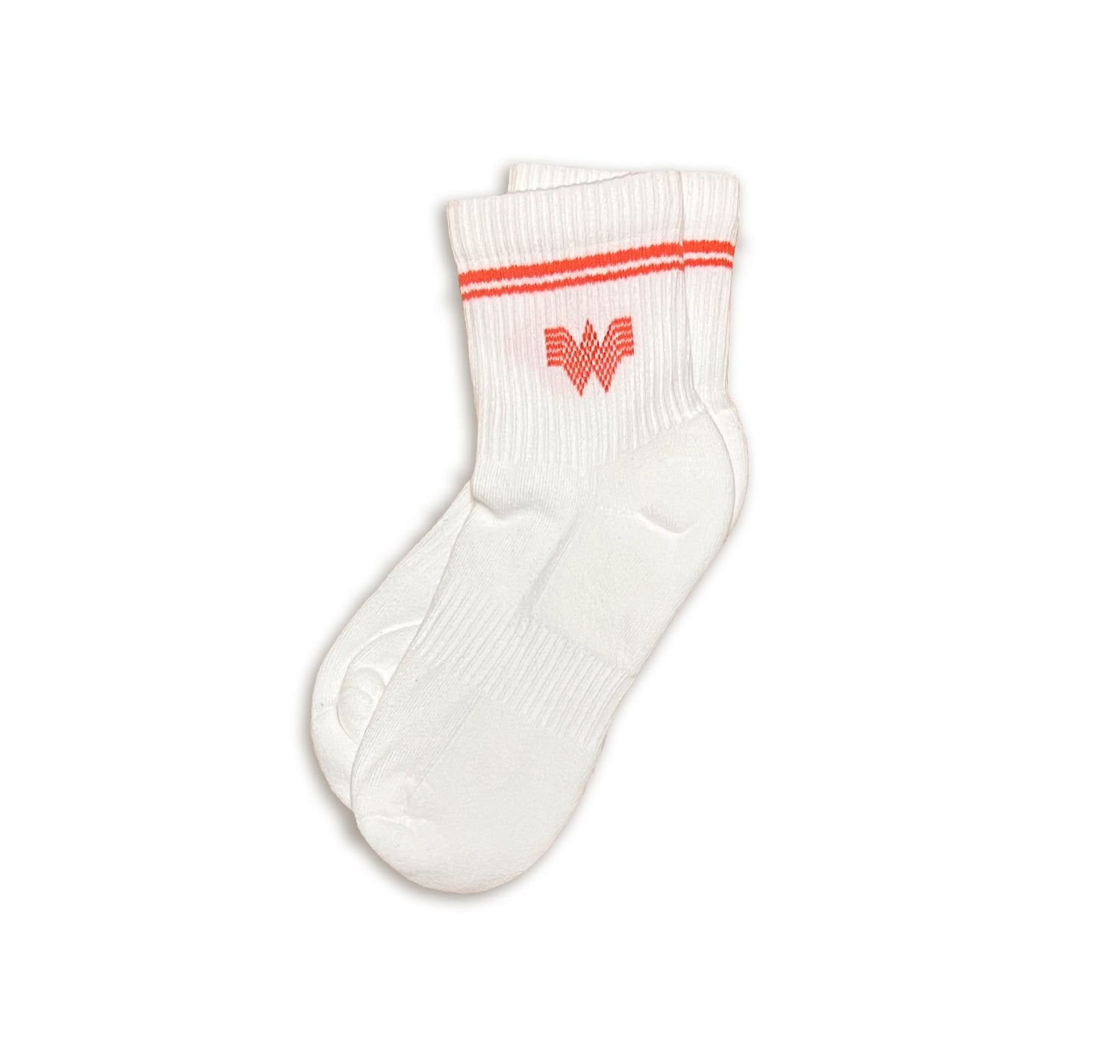 Elevate your athletic game with our White Athletic Socks! These ankle crew socks feature vibrant orange stripes and the iconic Whataburger logo. Stay comfortable and stylish while you dominate the field or court. Get your pair today!