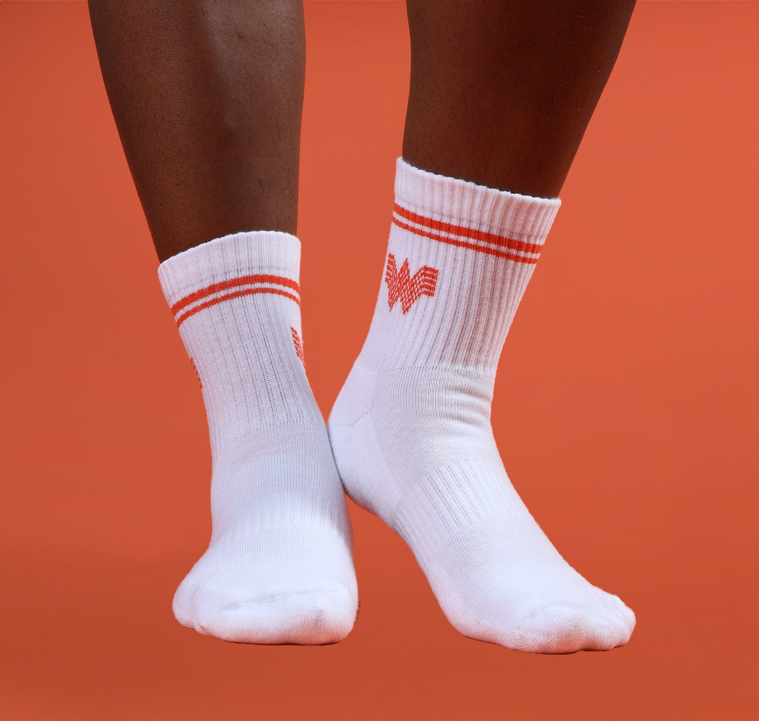 Elevate your athletic game with our White Athletic Socks! These ankle crew socks feature vibrant orange stripes and the iconic Whataburger logo. Stay comfortable and stylish while you dominate the field or court. Get your pair today!