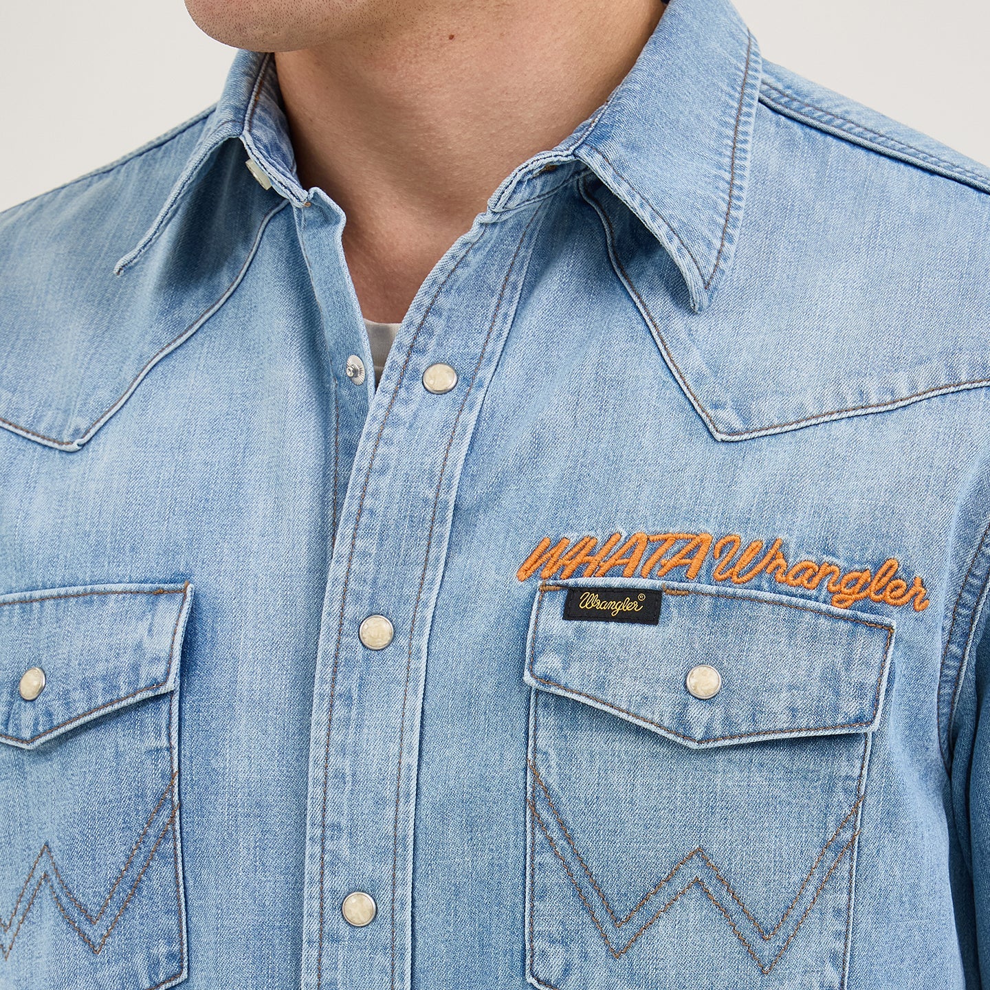 Long Live Cowboys…and Burgers! The Wrangler® x Whataburger® Western Shirt combines all the details of a classic with the limited-edition branding of your favorite Texas burger joint. It comes with an easy fit that’s not too tight or too loose, complete with a curved hem that looks great tucked or left untucked. This long-sleeve shirt is crafted from cotton in a sun-washed blue that looks well-worn right from the start. It comes with all the Western styling, just like you like it, an embroidered collaboration logo, and a woven label on the lower left side.